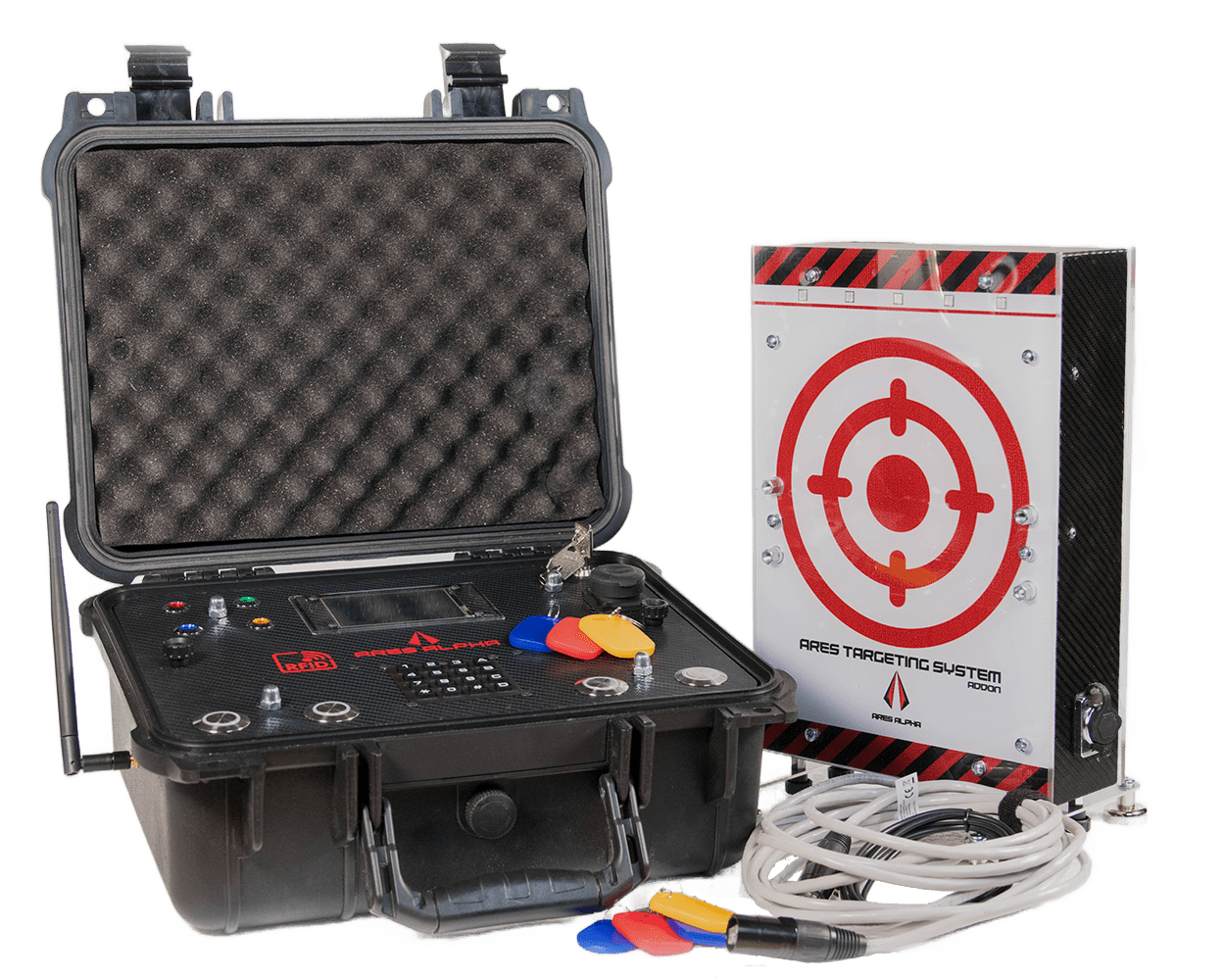 Ares Alpha Video Description Multiple game modes: Domination, Bomb, Money factory, Tags collect, VIP transport. 4G connection : Connect to Ares-Alpha servers by using the integrated 4G modem. It requires a SIM card and GSM coverage. WiFi connection: Connect to Ares-Alpha servers by using your own router or hotspot. Fully integrated with Ares-Alpha free app. Check in real-time ATB status, domination zones, bomb ticking, team points, etc. Local radio mesh: Connect multiple ATB’s from the same battlefield. Points from all ATBs will be synced without any online connection to the Ares Alpha servers. Online firmware updates. Constantly updates your ATB for new game modes, external modules integration, etc Offline mode. Use it offline without any connection to Internet. Advanced web management interface. Use your smart phone to configure all ATB settings. Keep tracking of teams points. Waterproof design. Use the box in any conditions. Integrated motion sensor. Use it on VIP transport mode. Integrated RFID reader and tags. Use the tags on Money Factory mode, or Tags Collect mode. Integrated GPS. Your box will be tracked on the map in realtime on Ares Alpha app. Integrated rechargeable batteries. Choose from Mega (48 hours) or Regular (24 hours) packs. Note that battery life it’s depending on the box settings like server refresh interval, game modes, etc. Addon interface: Conect Ares Alpha addons to the ATB Pro, like Addon target.Ytterligare information