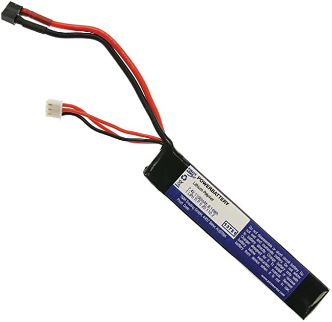 Ett starkt 11.1 volts LiPo batteri från Pirate Arms gjort för att få plats i stocktuben på de flesta vapen. Voltage: 11.1 Volt Capacity: 1’100 mAh / 20 C Charging current (max.): 1.1 A Discharge current (max.): 22.0 A Watthour: 12.2 Wh OBS! LiPo-batterier får aldrig tömmas helt, om batterinivån sjunker under en minimungräns så kommer det inte gå att ladda med din vanliga laddare och ditt batteri blir i princip obrukbart. Så fort du märket att din bössa låter ”slöare” än vanligt så behöver du ta ut batteriet och ladda det innan du kan fortsätta använda det. När du laddar ditt batteri så se till att ha det under uppsyn och att du inte överladdar det då risken finns att ditt batteri sväller och slutar fungera. Vi ansvarar INTE för eventuella skador som sker vid missbruk av batteriet där användaren inte har läst på hur man skall använda batteriet. Det är ditt eget ansvar att ta reda på hur du bäst tar hand om ditt batteri för att förlänga livslängden En enkel google-sökning ger dig den mesta information du behöver.Recensioner